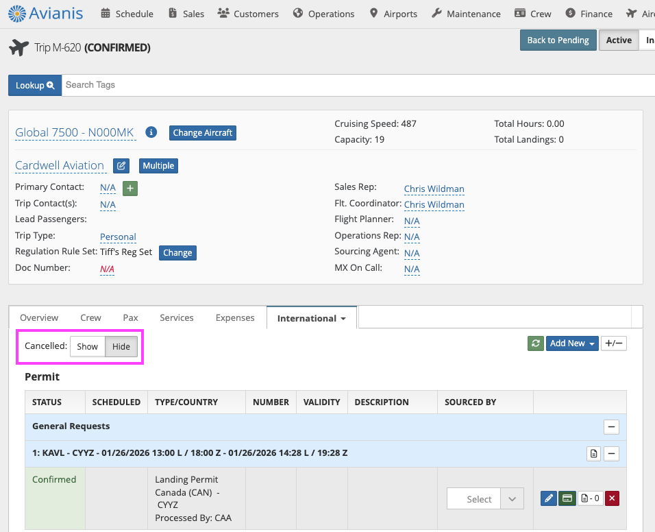 - New Show/Hide toggle for cancelled services on Permits, Regulatory, and Security tabs