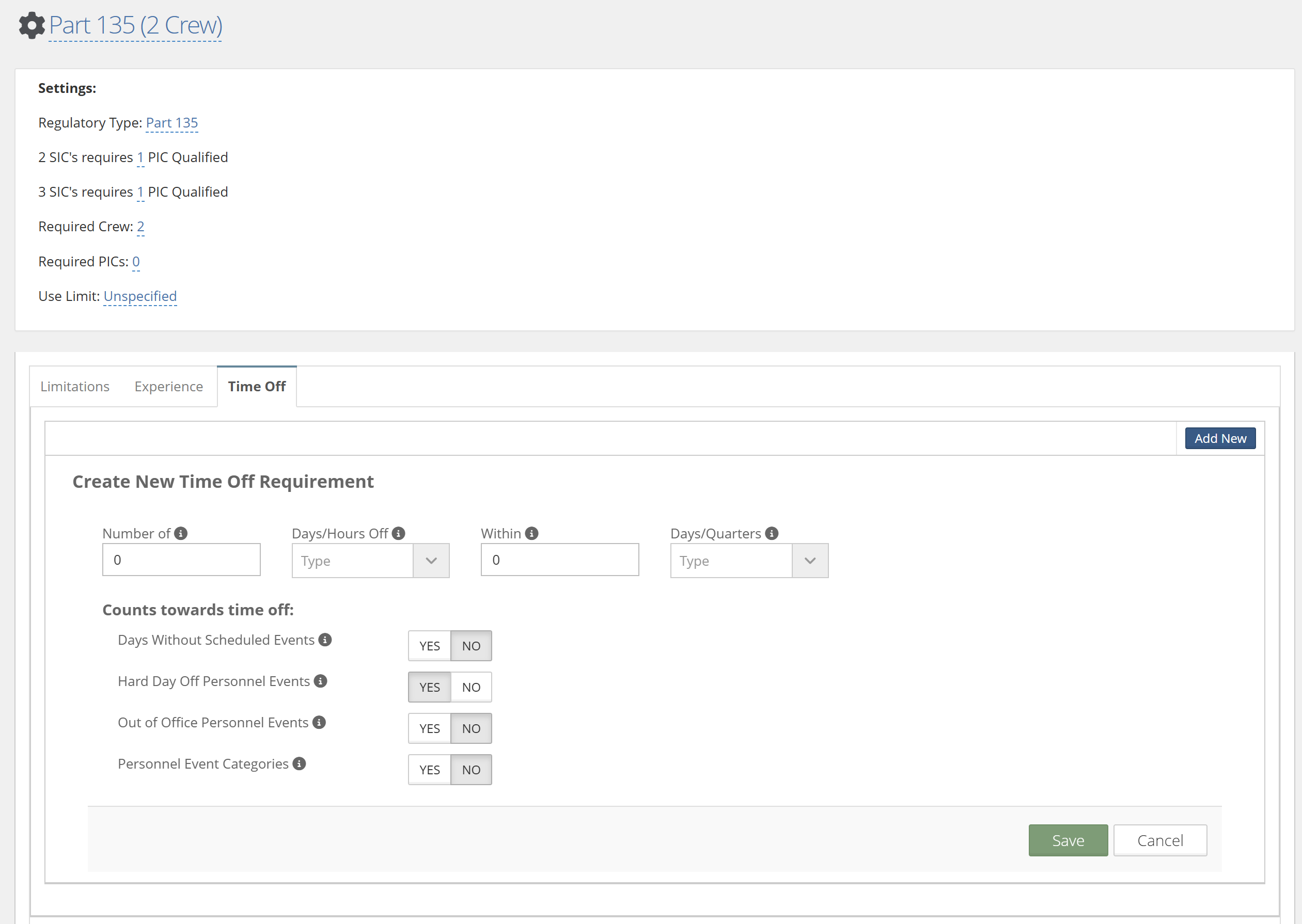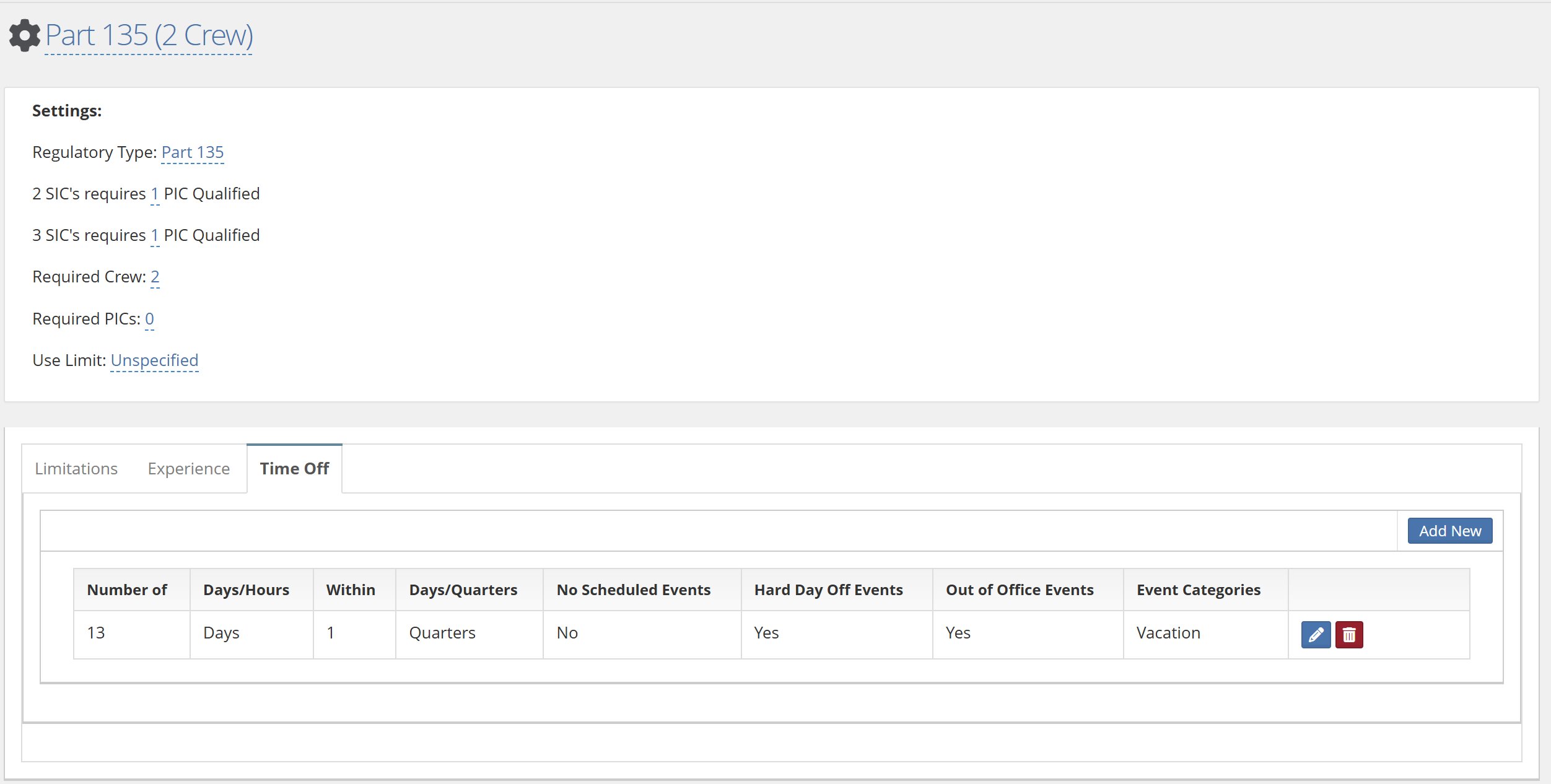 Completely redesigned Time Off configuration for clearer setup and more accurate feasibility calculations.