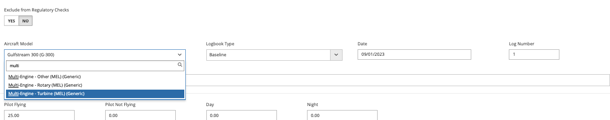 Select if this logbook entry should be excluded in regulatory checks (this will default to NO)