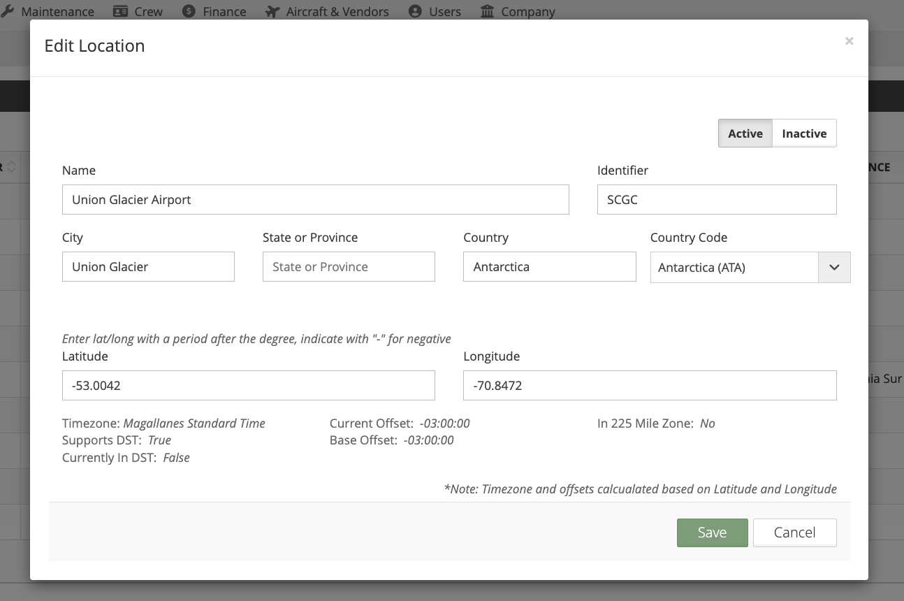 The Airport Directory allows a user to search based on airport identifiers and addresses. Essential information is provided by our 3rd party provider ACUKWIK. This article explains: How to search for an airport; and add an airport note; and how to ...