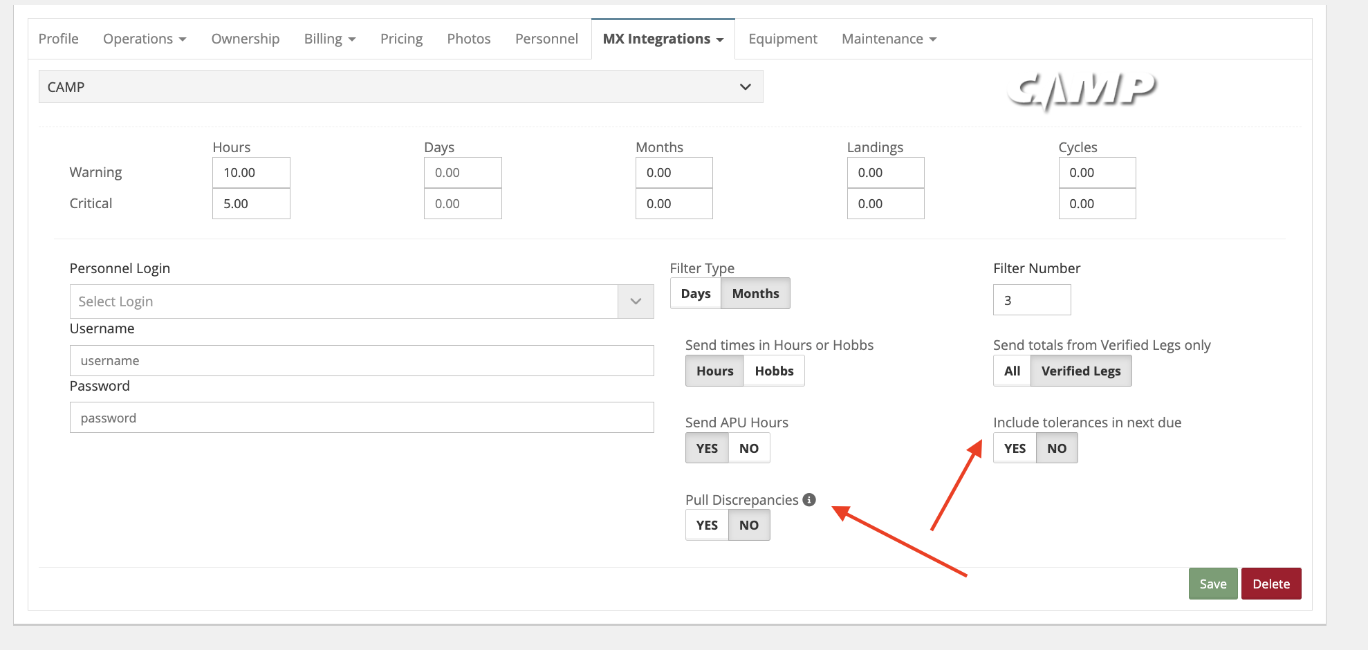 The integration allows operations to set whether to pull discrepancies from CAMP into Avianis for greater visibility to Operations. Discrepancies continue to be managed in CAMP and the information updates accordingly in Avianis.