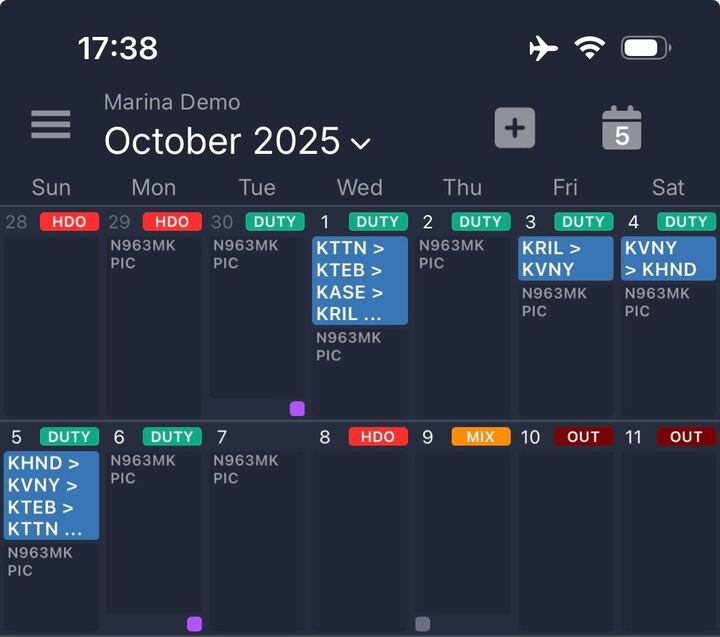 - Visibility Rules: Only flights on Trips that are NOT locked and NOT in 'Pending' status will appear. If a Trip is locked or pending, those flights will not display on the Calendar or Schedule page of the mobile app.