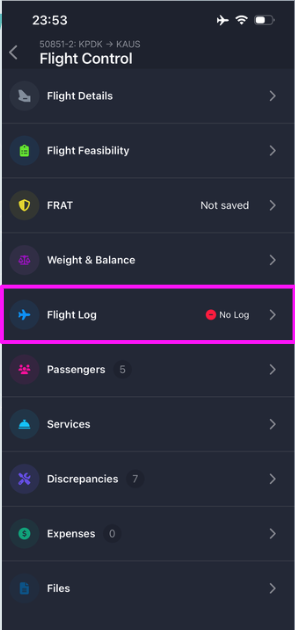 The Flight Log page is where you record and finalize the operational details of your flight.