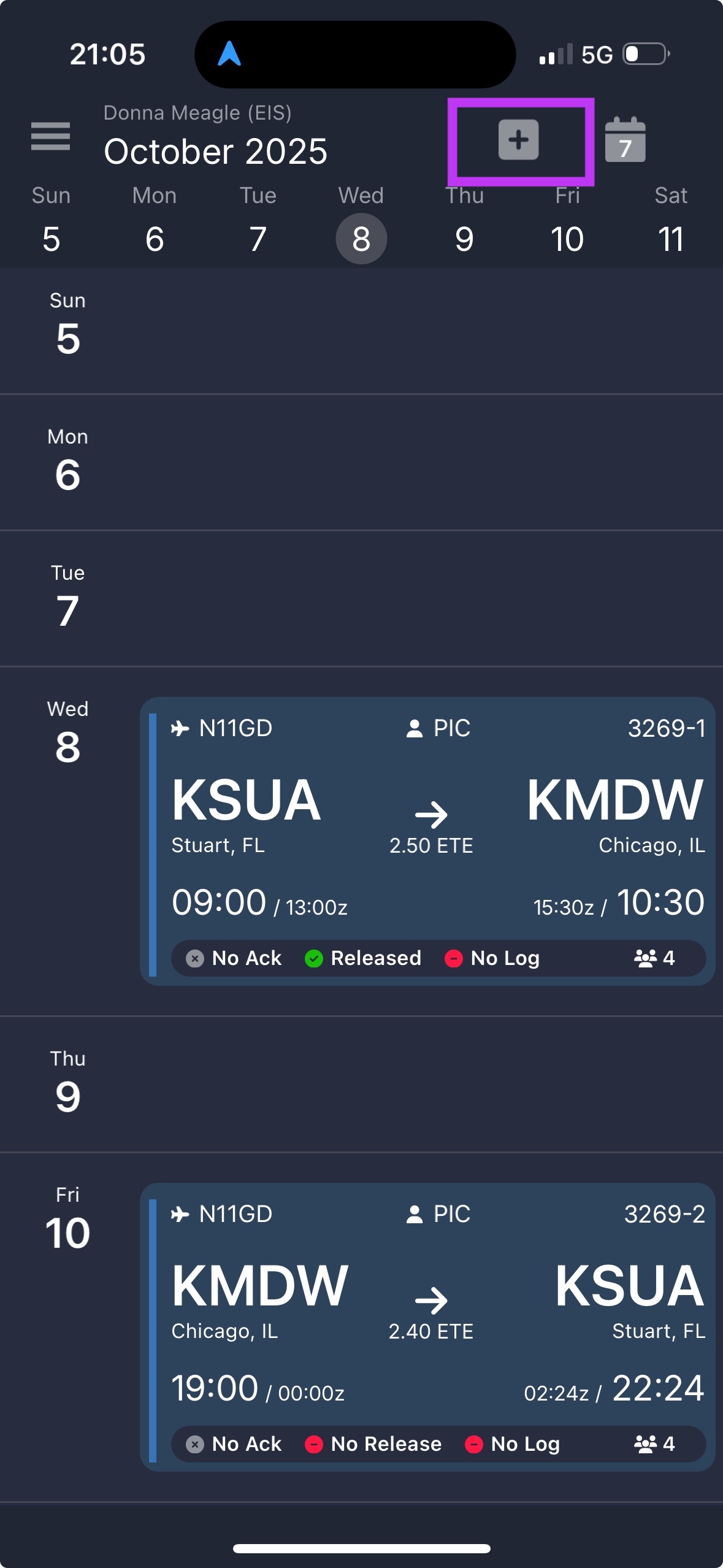 - If you have permission, you will see a Plus (+) button icon on both the Calendar page and the Schedule page. Tapping this icon will open the creation form.