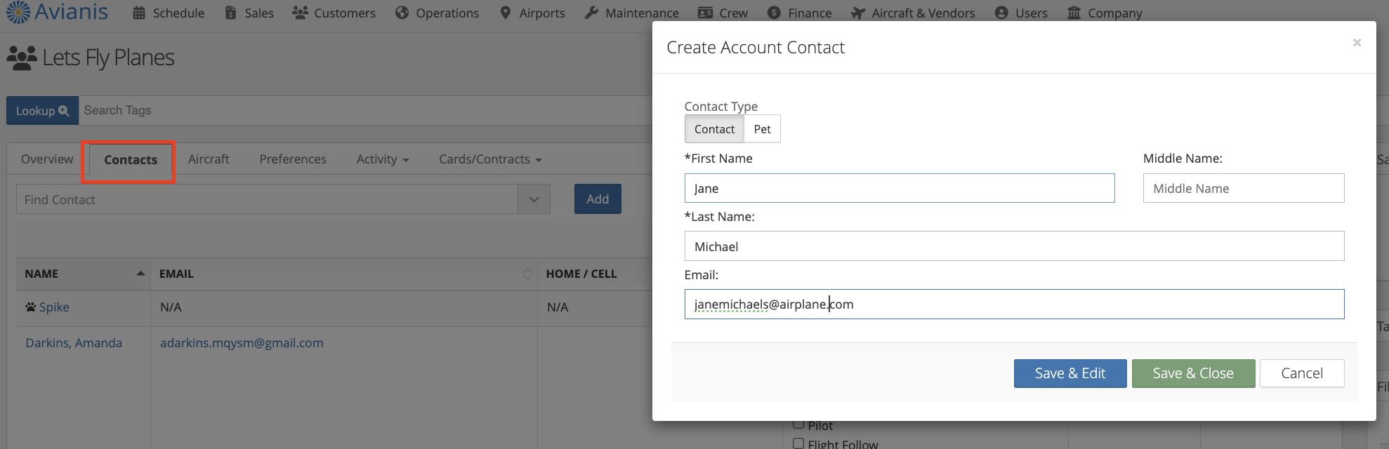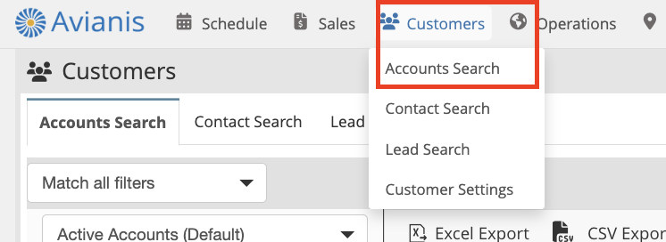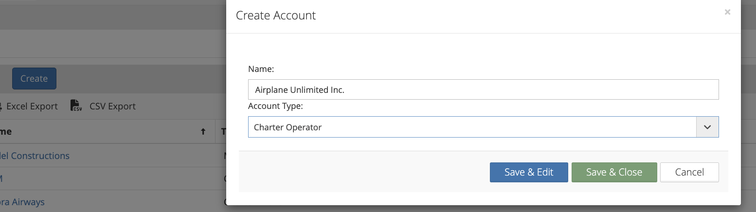 There are three main records in Avianis that are used to manage customers (Leads, Accounts and Contacts). Accounts are the parent record in which contacts such as passengers, executive assistants, etc. are associated with.