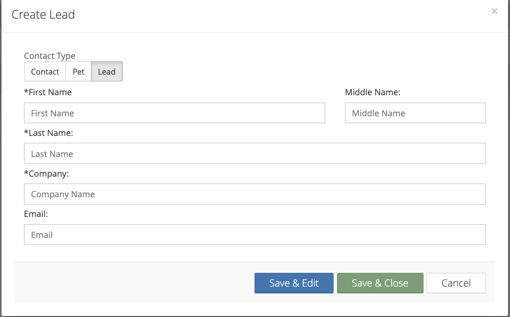 Next click "Save & Edit" to access the full contact profile or "Save & Close" to return to the previous page