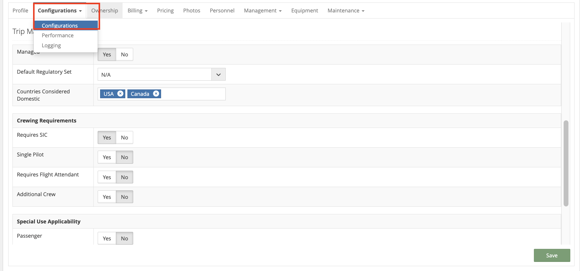 Aircrafts are required in order to begin generating quotes or trips on managed fleet. For off fleet tail numbers, those profiles are built as Vendor Aircraft. For more information on Vendor tail numbers please reference, Vendor aircraft are added in an alternate area.