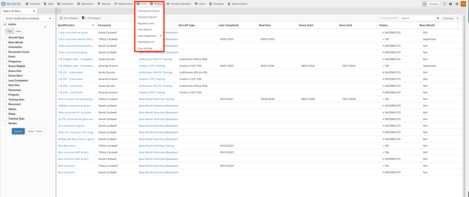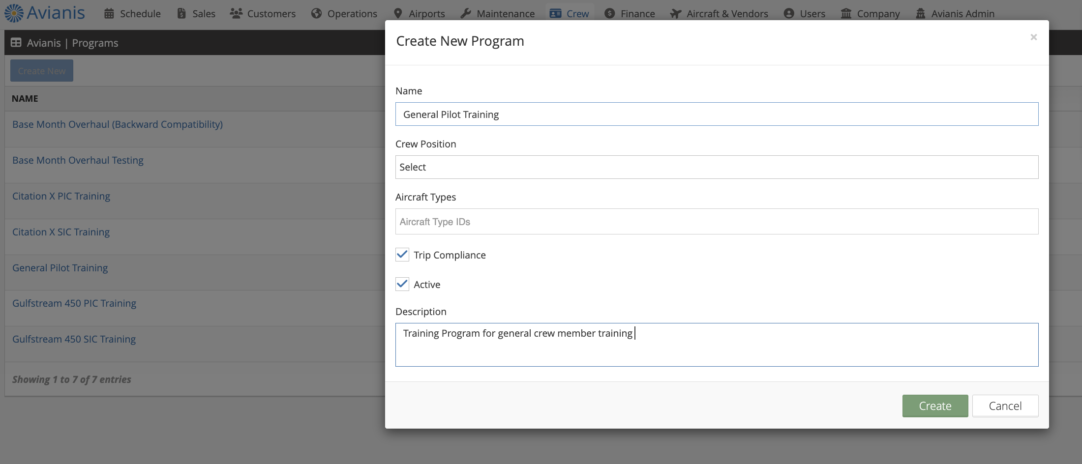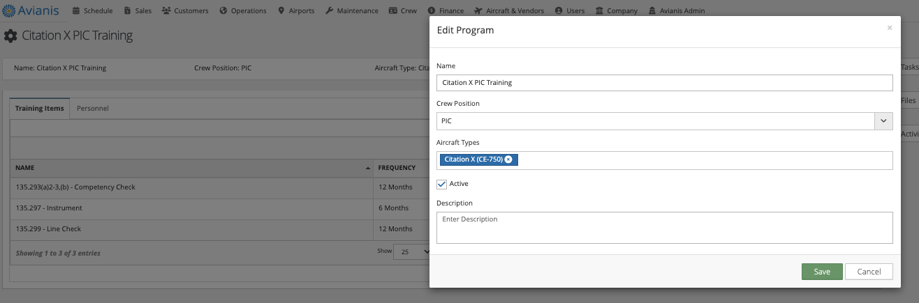 Training programs can be created as aircraft-specific and/or non-aircraft specific.