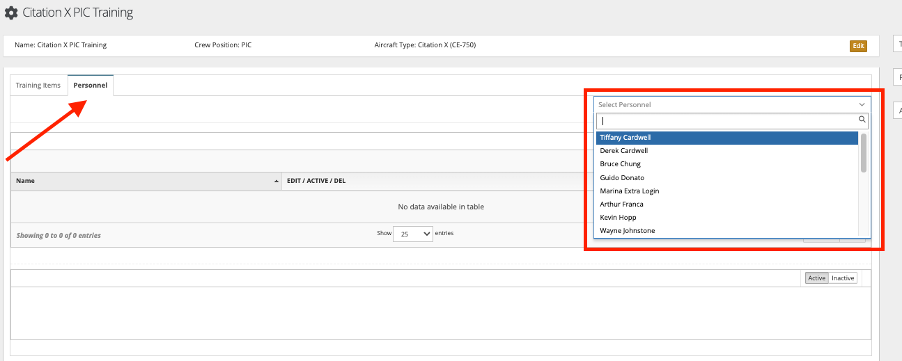 Once the Program is created you will then add applicable personnel by toggling to the "Personnel" tab and selecting crew members from the drop-down. Once added they will appear in alphabetical order based on their first name.