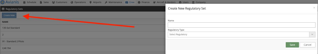 Select the applicable regulation for which the trips/flights using this set is to be applied. The applied regulation type is used in reports and other data when searching for trips/flights based on the regulation they flew under.